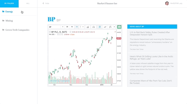 - When a new company is chosen, the candlestick graph changes along with the news articles relating to that specific company.