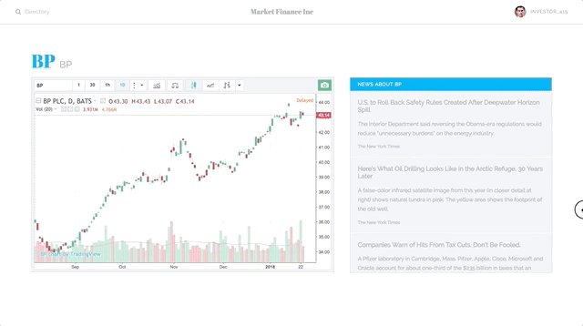 Market Finance Inc is a dynamic single-app financial trading webpage for users to visualize financial data and read news relating to specific companies.